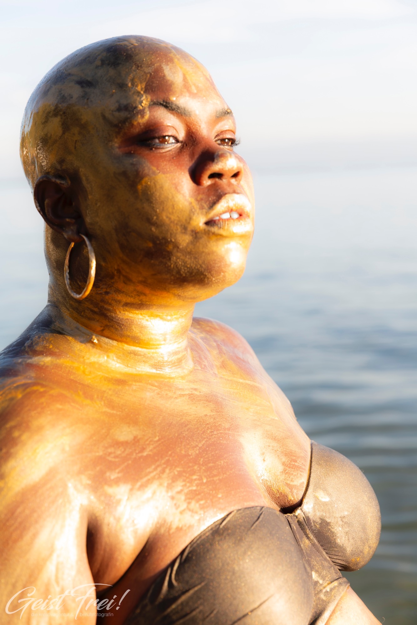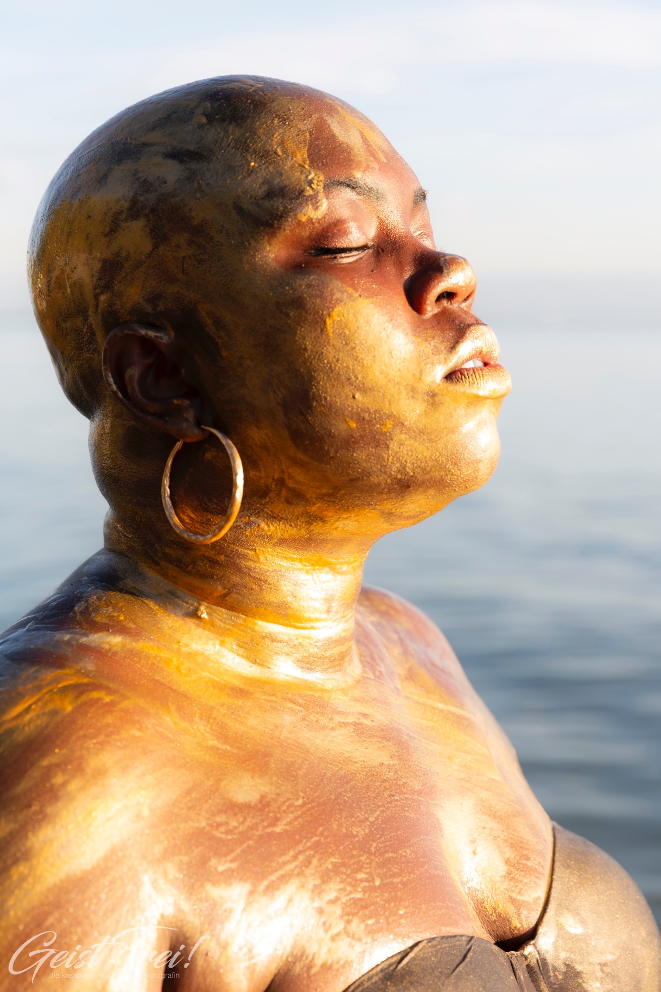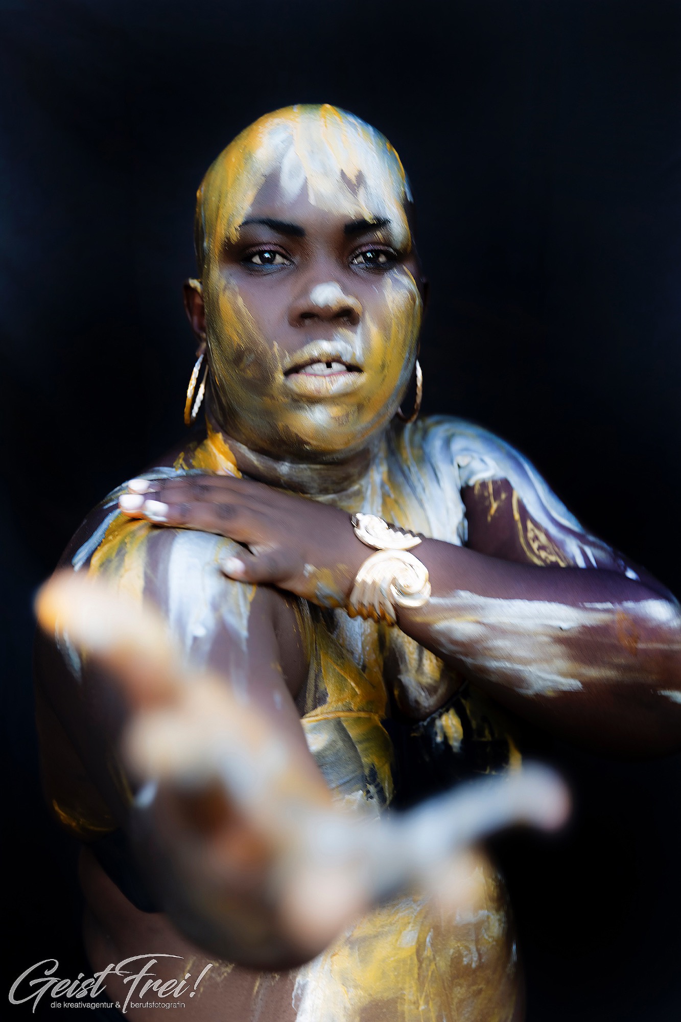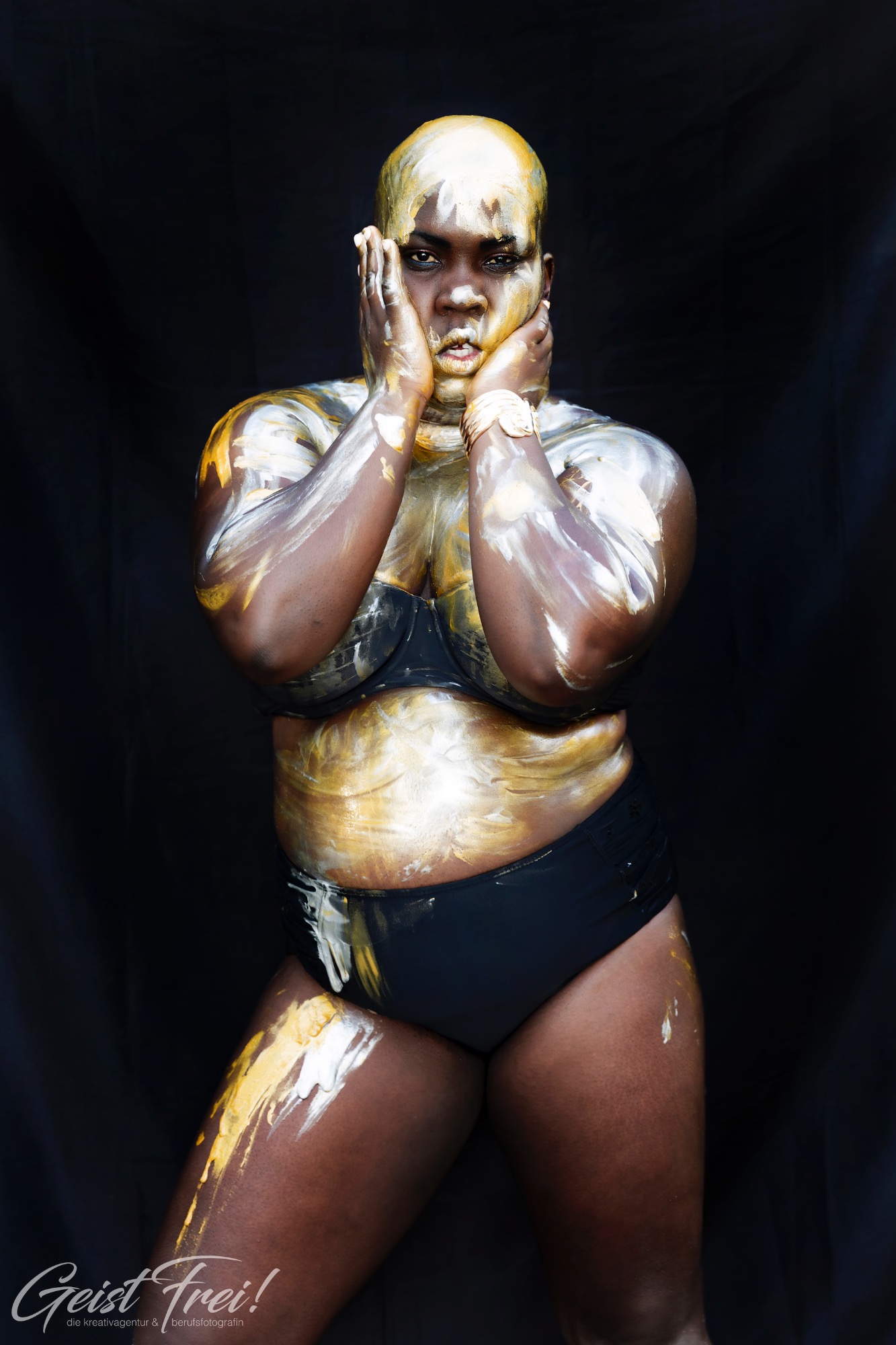 - kreative fotografie, Frau mit goldener und silberner Farbe auf der Haut