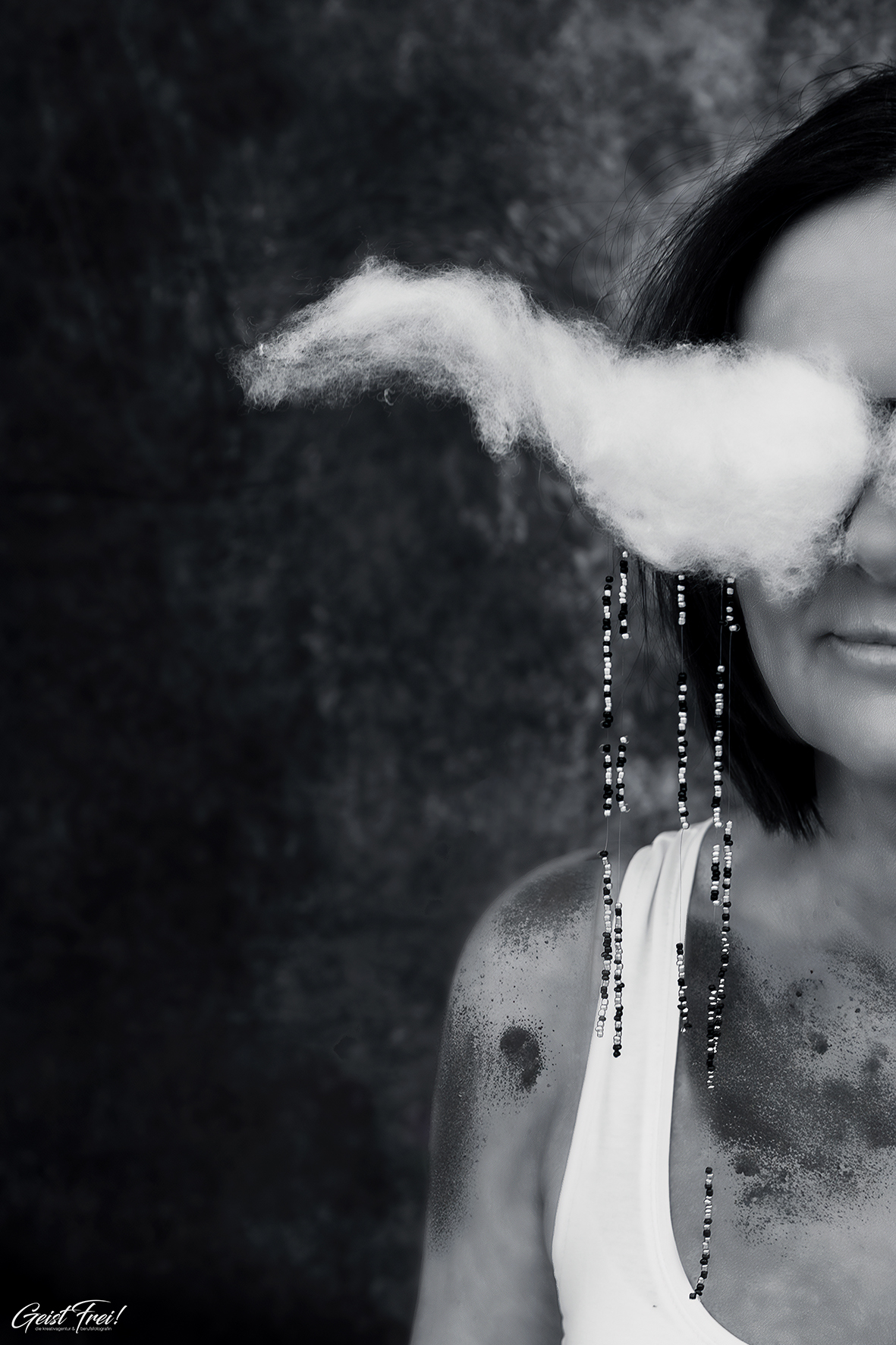 Die Wolkenbrille verschleiert die Sicht, während Perlen wie Regentropfen fallen. Gefühle, die sich nicht verbergen lassen