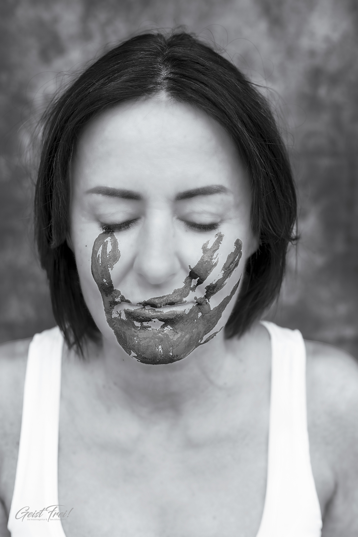 kreative Fotografie - schweigen Der Abdruck einer Hand über Mund und Kehle steht sinnbildlich für Schweigen und Unterdrückung. GeistFrei!