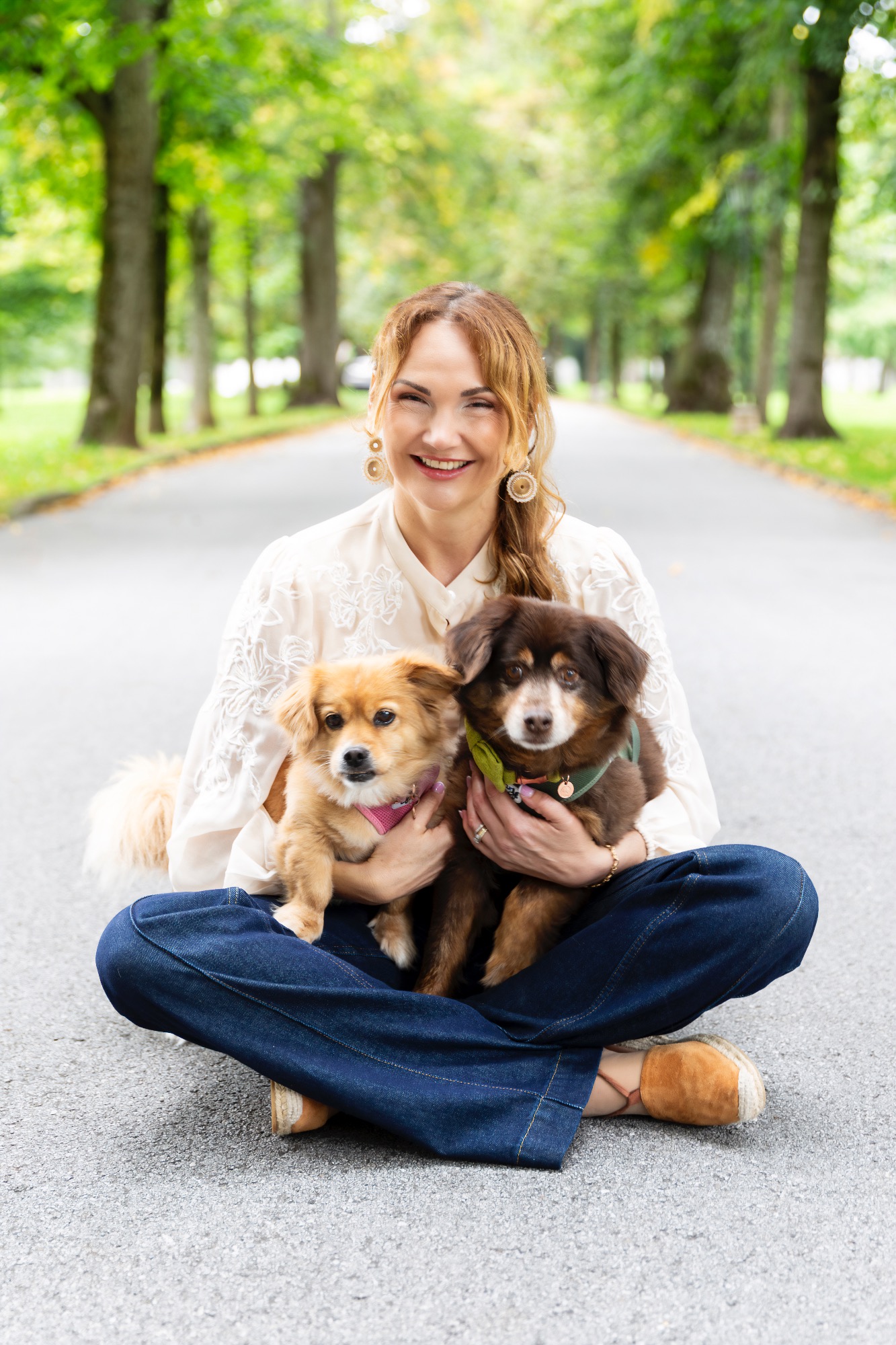 - Frau mit ihren Hunden im Park